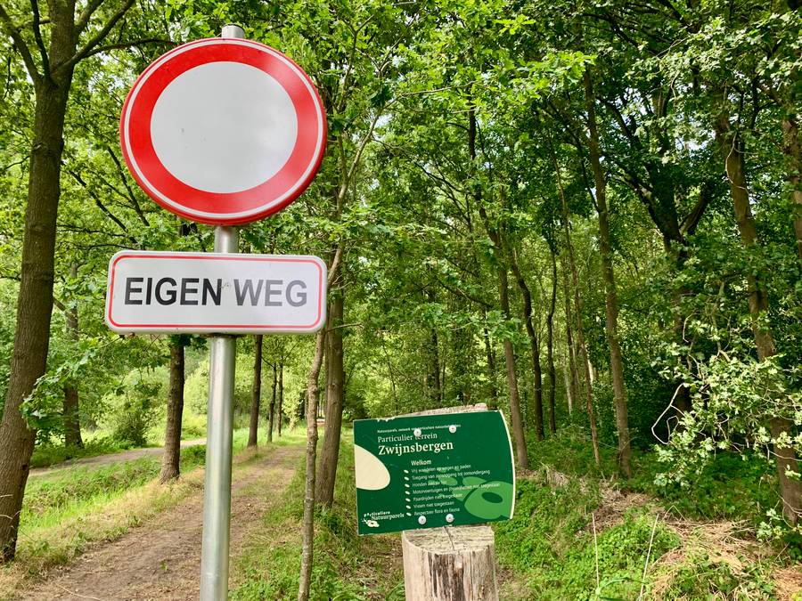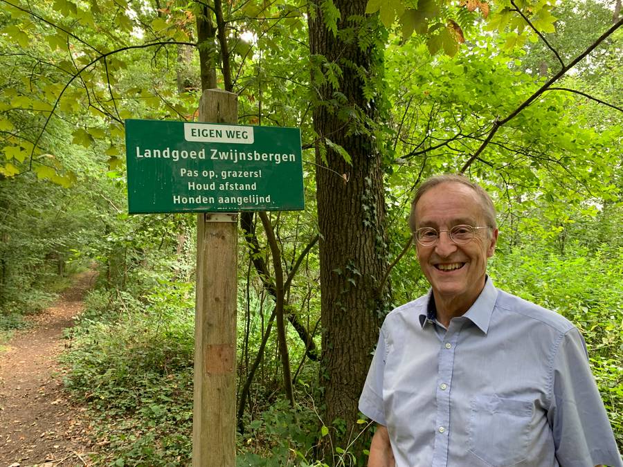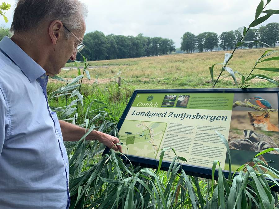 Maes van Lanschot bij een van de vele borden op landgoed Zwijnsbergen.