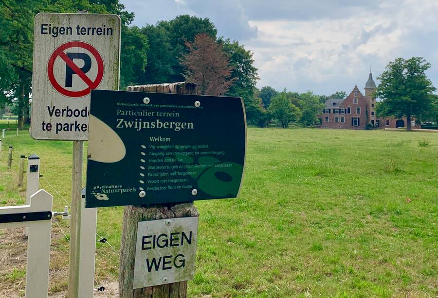 Het privégedeelte van het landgoed is duidelijk aangegeven met verbodsborden.