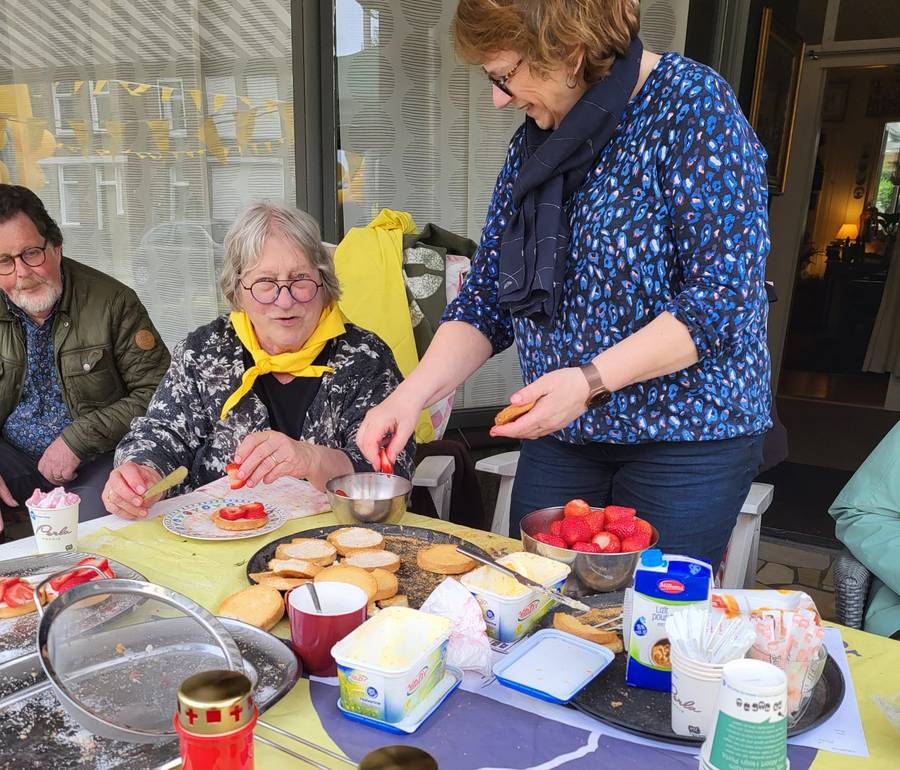Bewoners van de Antwerpsestraatweg op Borgvliet smeerden zo'n 300 beschuitjes met aardbeien voor deelnemers aan de Roparun.